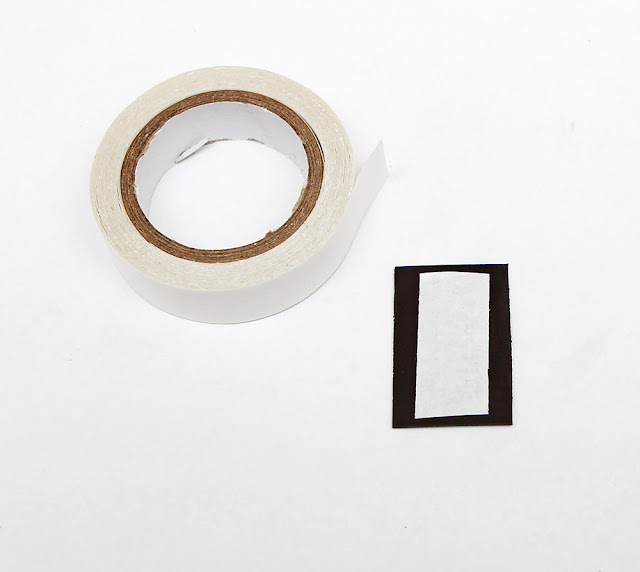 A mágnesszalagból vágjunk csíkokat, majd erre ragasszuk rá a kétoldalas ragasztót.